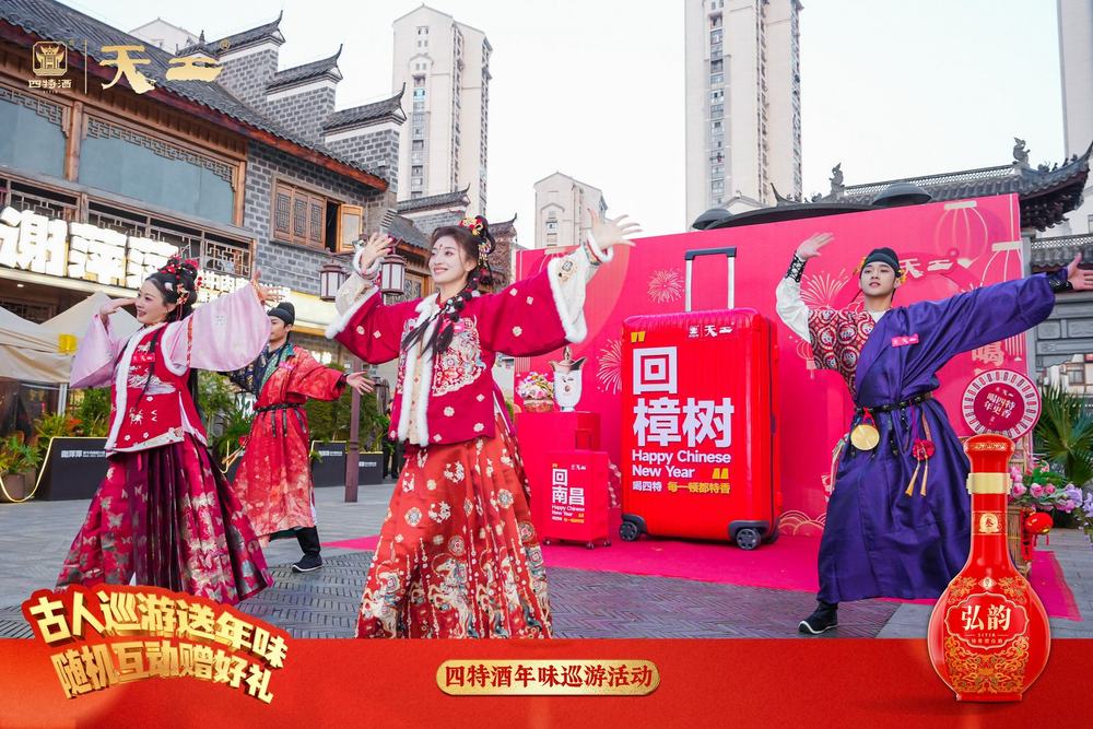 此次挑战赛的火爆,是四特酒春节系列活动线上线下多元共振的成果。线上,2月2日,新春主题微视频上线,引发回家团圆的情感共鸣,为挑战赛打响热度第一枪;线下,“货郎巡游”活动以古装NPC快闪、游戏化互动及流动巡游等形式,在历史街区打造耳目一新的记忆点;“古人接站”快闪活动随后登陆南昌西站、樟树东站,以古韵今风的反差互动恭迎游子返乡,进一步释放品牌声量。
