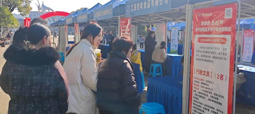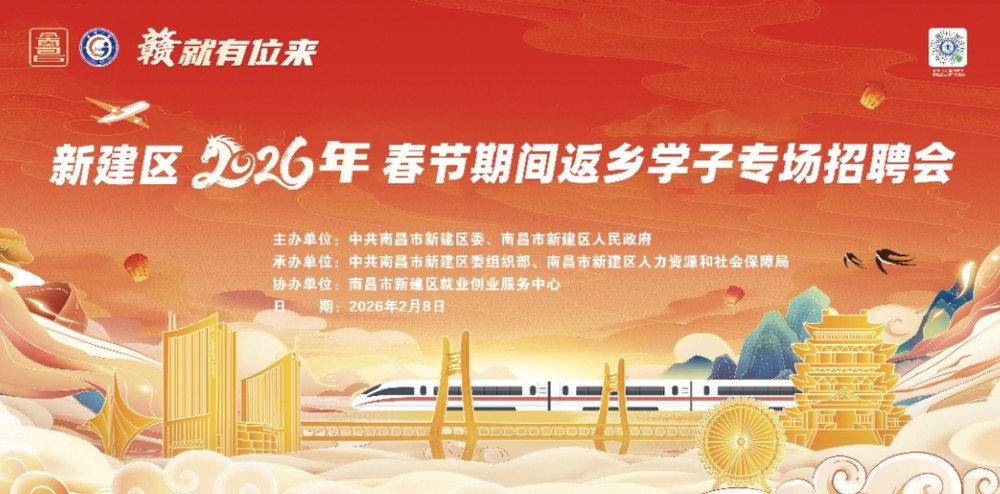 为深入实施人才强市战略,围绕“每年吸引10万名大学生和技能人才来昌留昌创业就业”目标,依据(洪人社发〔2026〕3号)《关于开展2026年春节期间返乡学子“五个一”对接活动的通知》文件精神。2月8日在新建区心怡广场由中共南昌市新建区委、南昌市新建区人民政府、中共南昌市新建区委组织部、南昌市新建区人力资源和社会保障局、南昌市新建区就业创业服务中心等单位联合举办了新建区2026年春节期间返乡学子专场招聘会。