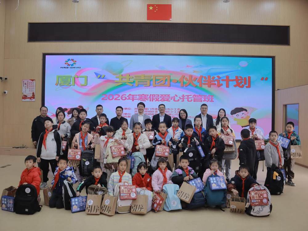 2月2日,厦门“共青团·伙伴计划”2026年寒假爱心托管班开班仪式顺利举行。人保寿险厦门市分公司党委委员、副总经理聂彦声携政企服务部负责人参加开班仪式,与共青团厦门市委、厦门市少工委等主办方相关负责人共同见证这一暖心时刻,携手为厦门新市民家庭子女撑起假期“守护伞”。