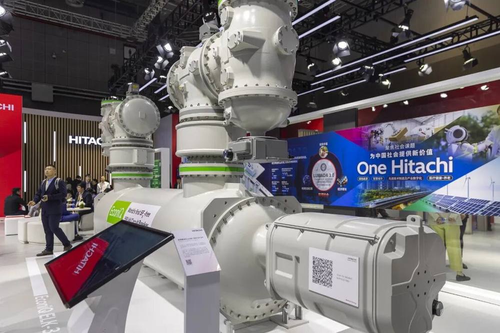 日立集团在进博会上多次展示了全球首创技术及产品,涉及绿色能源、智能制造等领域。这是日立能源本次展示的“大杀器”——全球首台550kV无SF₆气体绝缘开关设备,该设备采用全固态绝缘技术,实现了更安全、更环保的电力传输方案,适用于特高压输电场景。