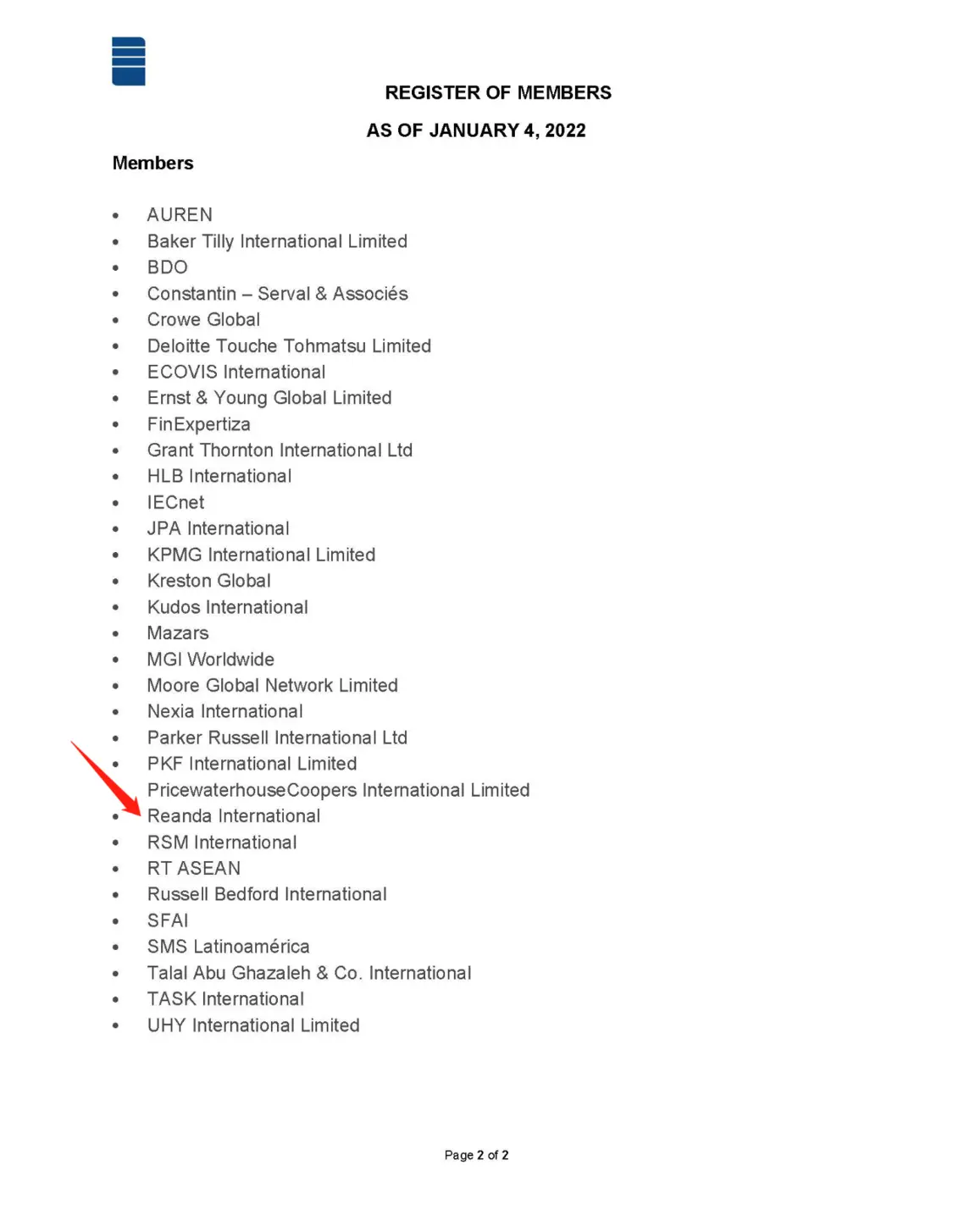 截止至2021年底,FoF有32家正式会员,包括德勤、安永、毕马威、普华永道、利安达国际和其他全球的会计网络。