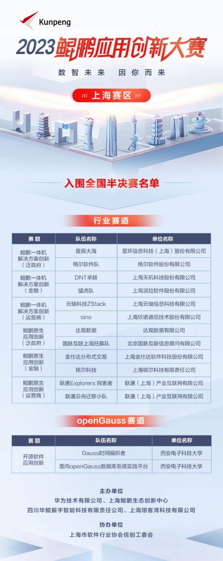 上海赛区入围全国半决赛名单公示如下,接下来,各个赛题Top2团队将作为上海赛区代表参与全国半决赛的激烈角逐。
