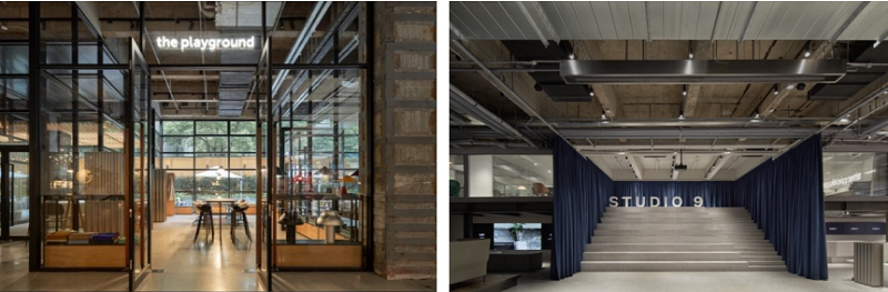 The Playground 设计室(左)与The Square小广场(右)
